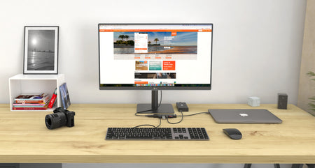 A small docking station that, despite its very compact dimensions, offers everything you need for basic work. Connect an external monitor in up to 4K resolution, two USB ports for connecting your peripherals and an SD and microSD card reader to help with data transfer. Of course, you can also power your laptop, up to 60W (you can either use your existing power adapter or purchase a charger from us)