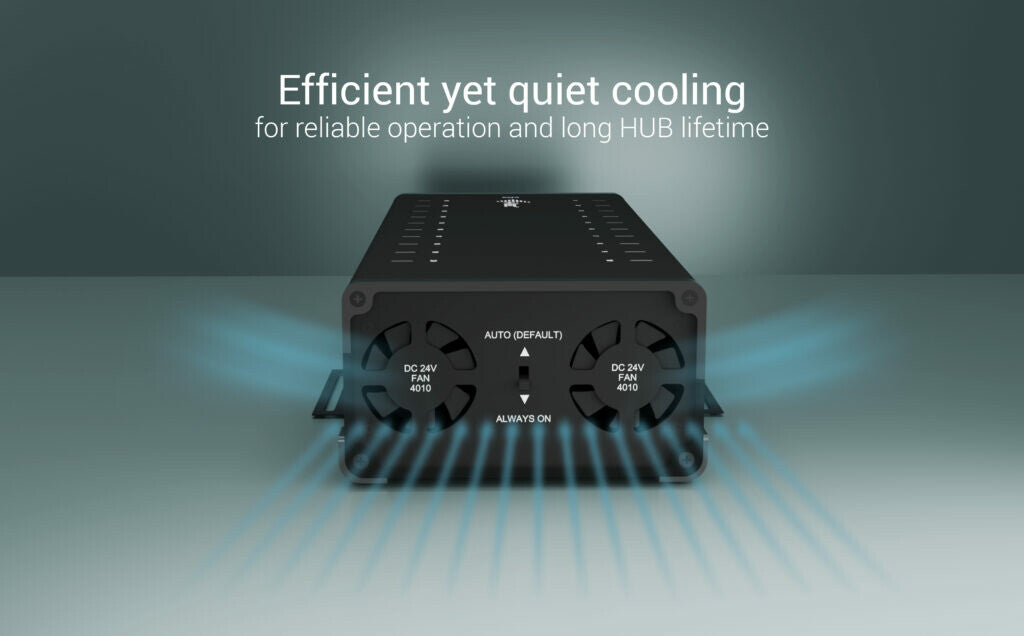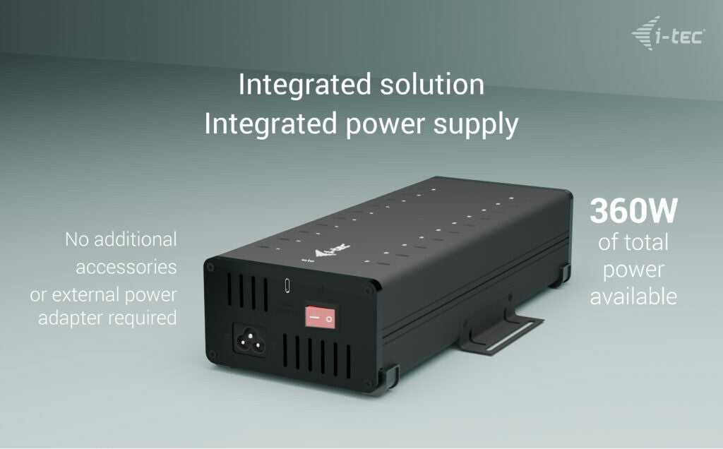 - The HUB includes an integrated power adapter (360 W)