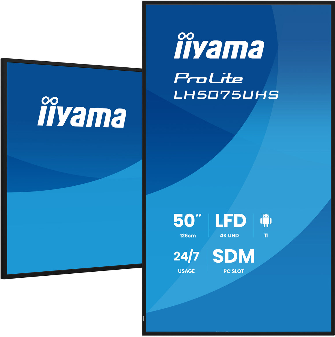 Choose non-stop high performance and reliability with the ideal all-in-one signage solution for mission critical environments. The LH5075UHS from iiyama can be operated in landscape or portrait orientation in continual around the clock environments, 24/7 without any interruption. Its versatility can be adapted to your industry’s display needs. On-board Android 11 OS means you can easily customize the display to your needs and install applications directly to it. The on-board iiSignage² (Content Management System) gives you total control of your messaging and advertising remotely and safely. The SDM Slot provides embedded PC option for total flexibility, security and control, while the FailOver feature ensures your content is always actively displayed through your choice of inputs. The built-in (and removable) WiFi module means this series is ready for remote content delivery using your network. Now the display is also offering DP-Out from any input. With iiControl (DMS), iiShare and the integrated EShare app (wireless screen sharing) you bring effortless ideation and efficient collaboration in your enterprise or school. You can start sharing wirelessly easier than ever before.