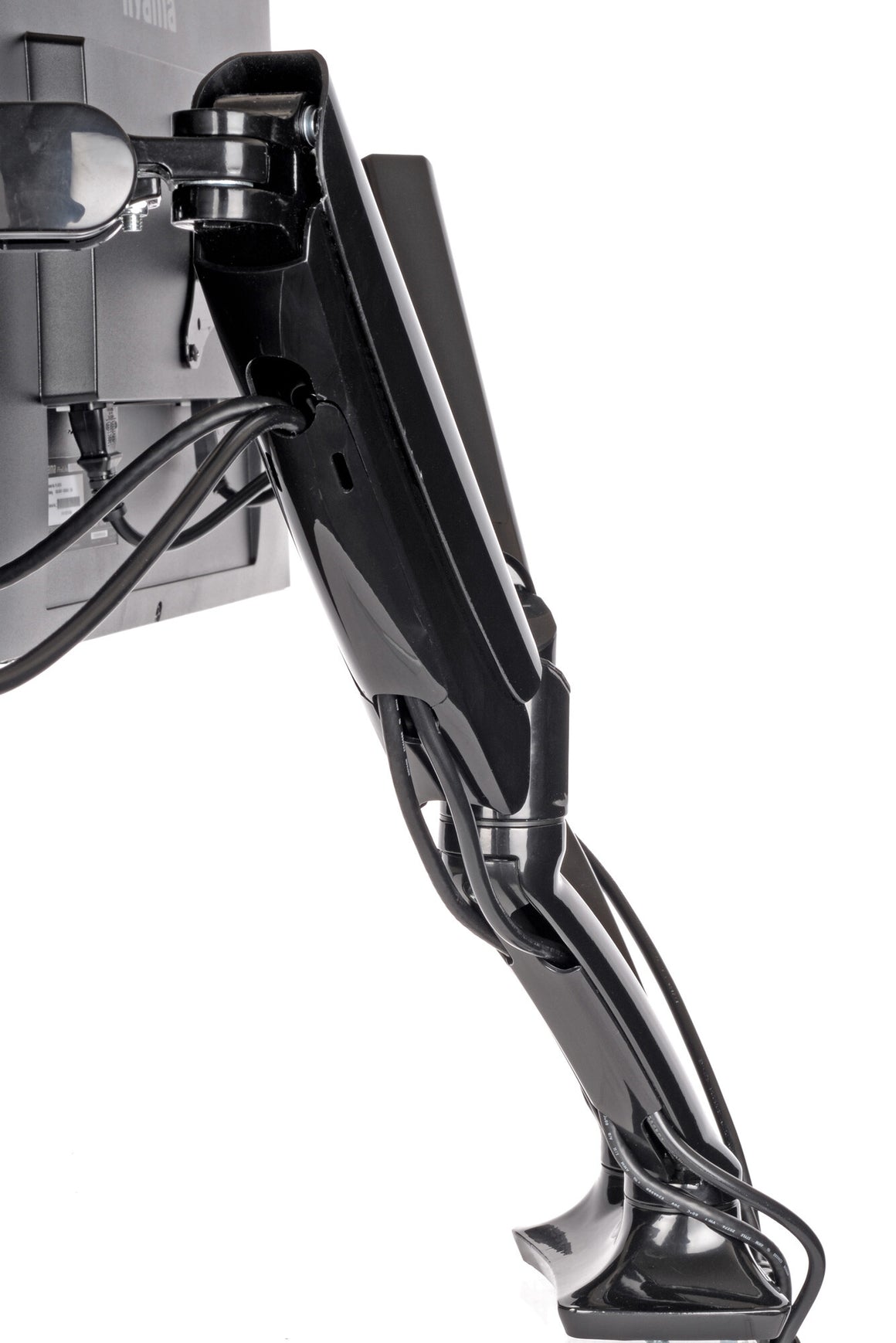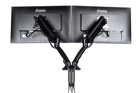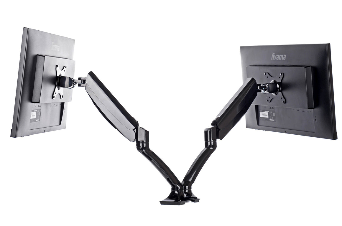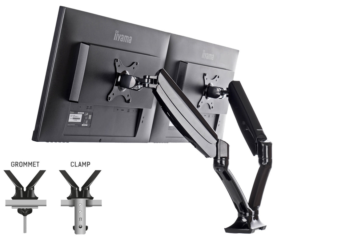 The iiyama DS3002C-B1 is a desk mount (grommet or clamp) for two flat screens up to 27”. Using the arm you save space on your desk and thanks to the cable management system it is easier to keep your workplace tidy. But what is more important, offering broad adjustment capabilities including tilt, swivel, height and rotation, the dual gas spring arm makes sure you can easily adjust the position of the screens to your preferences assuring ergonomic body posture.