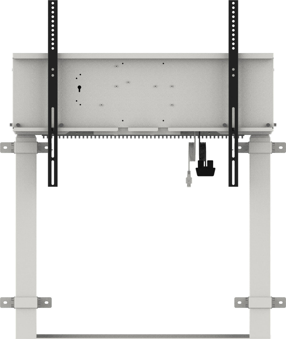 This fixed on-floor and wall single-column electric lift stand is a perfect solution for 55"-98" displays. It’s suitable with screens up to VESA 800x600mm and up to 120kg. Equipped with an easy mount, based on “pull and release” brackets and a wired remote, it is a perfect solution for displays placed in classrooms or conference rooms.