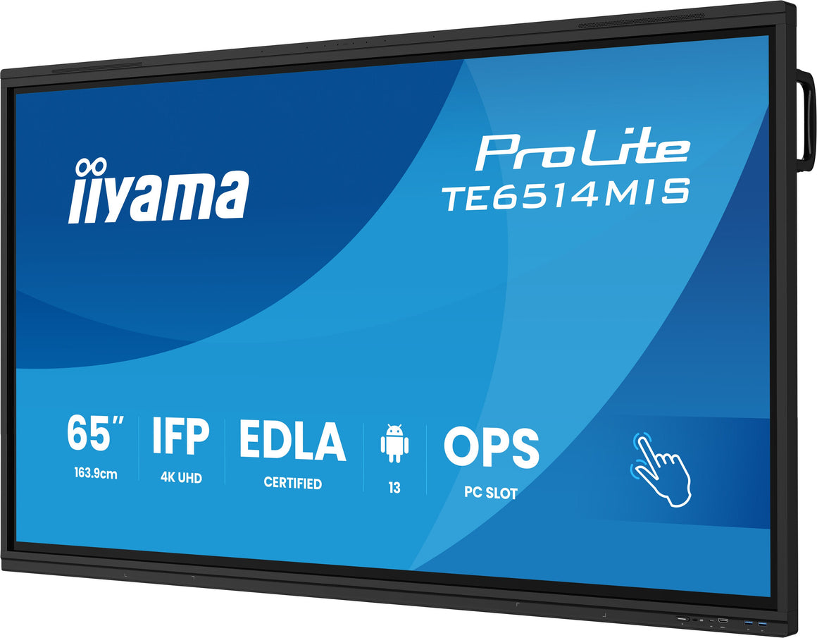 The TE6514MIS-B2AG is a visionary 4K UHD Google EDLA Certified interactive display that sets a new standard for ingenuity and performance. Crafted with precision, it features a Zero Airgap LCD screen that eradicates parallax, alongside the accurate PureTouch-IR+ with Palm Rejection, ensuring seamless interaction. Powered by iiWare 12E with Android 13 and equipped with WiFi connectivity, it effortlessly integrates into your ecosystem, supported by the iiyama (DMS) Device management platform. Experience unparalleled wireless sharing capabilities with the intuitive iiyama Share and EShare app, facilitating seamless brainstorming and effective collaboration within your enterprise or educational institution. With its innovative 4K Interface and customizable User Profiles , the TE6514MIS-B2AG offers a personalized experience, granting easy access to bespoke applications and Cloud Drives. Adapted to thrive in bustling hybrid environments, it becomes a tailored solution for diverse user needs, revolutionizing collaboration, communication, and engagement. Transforming modern workplaces, educational realms, and dynamic meeting spaces, this display emerges as an essential cornerstone, nurturing progress and connectivity beyond boundaries.