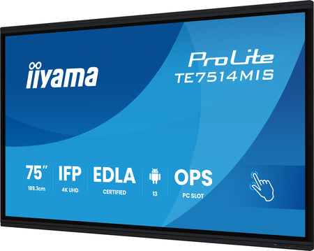 The TE7514MIS-B2AG is a visionary 4K UHD Google EDLA Certified interactive display that sets a new standard for ingenuity and performance. Crafted with precision, it features a Zero Airgap LCD screen that eradicates parallax, alongside the accurate PureTouch-IR+ with Palm Rejection, ensuring seamless interaction. Powered by iiWare 12E with Android 13 and equipped with WiFi connectivity, it effortlessly integrates into your ecosystem, supported by the iiyama (DMS) Device management platform. Experience unparalleled wireless sharing capabilities with the intuitive iiyama Share and EShare app, facilitating seamless brainstorming and effective collaboration within your enterprise or educational institution. With its innovative 4K Interface and customizable User Profiles , the TE7514MIS-B2AG offers a personalized experience, granting easy access to bespoke applications and Cloud Drives. Adapted to thrive in bustling hybrid environments, it becomes a tailored solution for diverse user needs, revolutionizing collaboration, communication, and engagement. Transforming modern workplaces, educational realms, and dynamic meeting spaces, this display emerges as an essential cornerstone, nurturing progress and connectivity beyond boundaries.