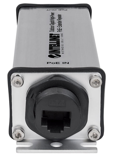 The Intellinet Network Solutions Outdoor Gigabit High-Power PoE+ Extender Repeater (561211) is designed to extend connection distances from a PoE source to an output device up to 100 m (328 ft.) via Cat5e or Cat6 cable. Cover even longer distances by cascading up to five extenders. The PoE+ Extender Repeater does not need an additional power supply, as it draws the power it needs from the PoE input.