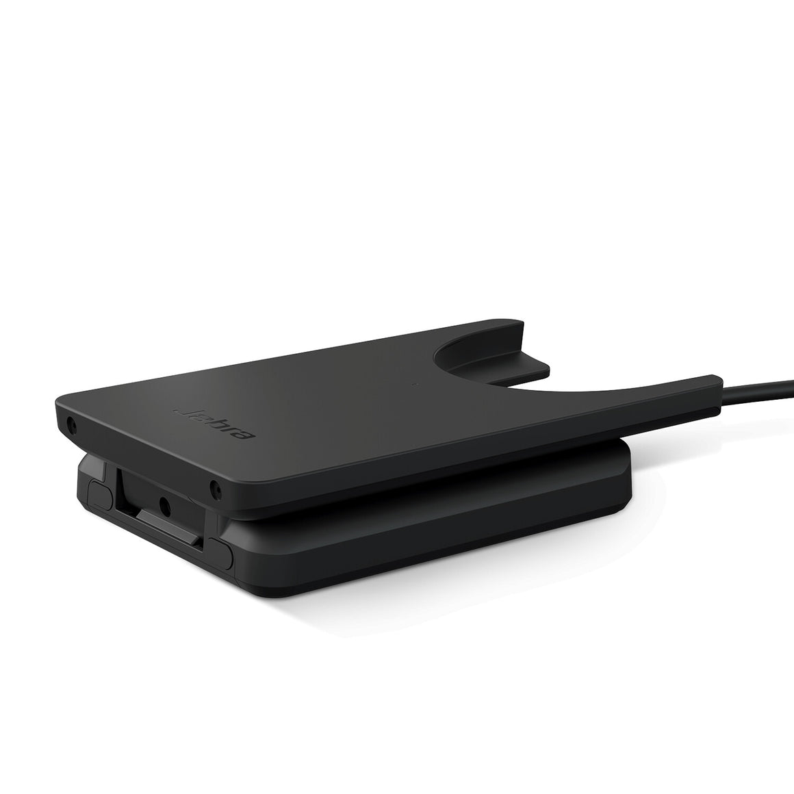 The charging stand for Jabra Evolve2 55 provides easy and convenient charging and storage at your desk. Cable not included, A charging cable with USB-C connector is required and can be purchased separately.