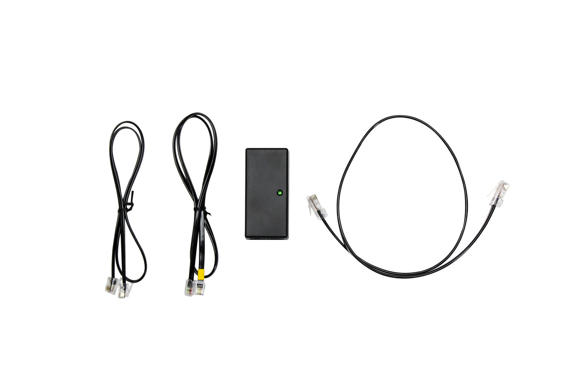 Enables remote operation, answer/end calls, for wireless headset use with various phones, thus eliminating the need for a mechanical handset lifter