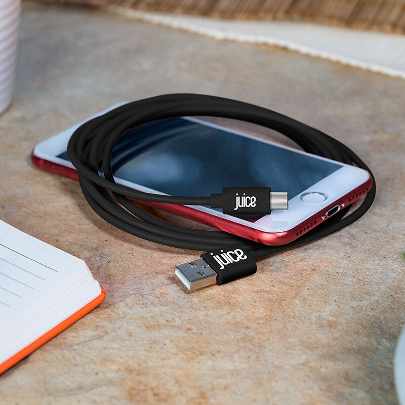 Juice XL USB Type C 3. 1 charge and sync cable. This improved tech allows you to charge and sync your devices faster via USB-C. Plug the USB connector into a charger or computer and the reversible USB-C connector into your device and charge. Reversible connector allows you to plug in your device in any direction. 3 Amp output charge faster. improved technology allows faster data transfer (10 x faster than USB 2. 0). Device compatibility: All devices with USB-C connection: Mobiles, tablets, gaming devices, lap tops, hard drives and more, Samsung compatible mobiles and tablets, Huawei compatible mobiles, One Plus compatible mobiles. Available in Aqua colour. Cable Length: 2m.
