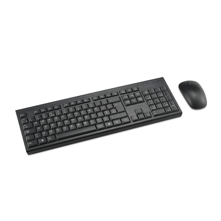 The KM150 EQ Wireless Desktop Set is a value-for-money keyboard and mouse set featuring a minimum of 62% post-consumer recycled content of the total plastic components.* Windows and macOS compatible, it delivers reliable wireless connectivity via a 2.4GHz connection with government-grade AES 128-bit encryption. The full size ANSI/ISO keyboard includes a numeric keypad and provides convenient LED indicators for battery-life, num lock, and caps lock. A spill-proof design protects the keyboard electronics from accidental spills from coffee, water, and other liquids. The quiet-click mouse is significantly quieter than a standard mouse, reducing noise in busy workplaces. Wipe down protection certified. Includes 3-year limited warranty. *Excludes printed circuit board (PCB) assembly, 2.4GHz dongle and dry batteries