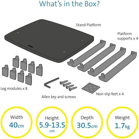 Larger monitors require wider monitor stands for more stability. The SmartFit™ Monitor Stand Plus for screens up to 24 supports more comfortable monitor placement. The height-adjustable design allows you to easily raise or lower your monitor to the proper viewing height, promoting improved posture and proper eye alignment. Thoughtfully engineered for stability and versatility, it is a useful companion for supporting a more comfortable workstation.
