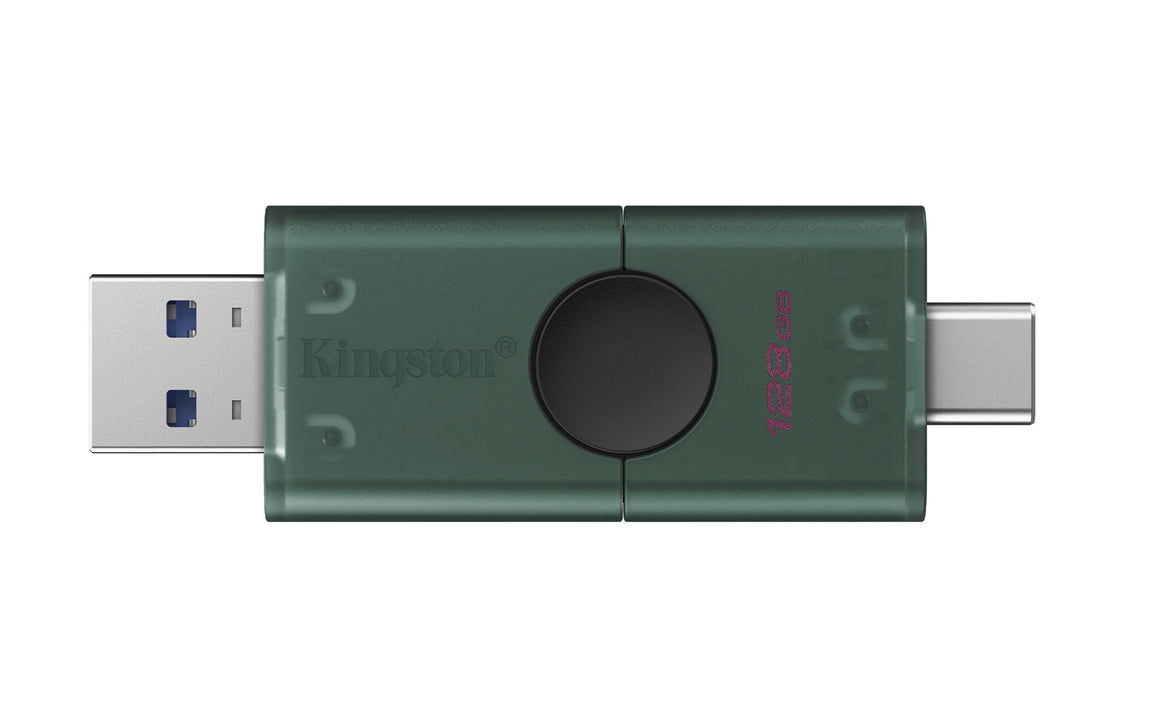 Kingston® DataTraveler® Duo features dual USB connectors that work with both USB Type-A and USB Type-C®* ports for maximum compatibility. The innovative dual moving cap design makes the drive stylish and convenient, with no cap to lose. With capacities up to 256GB**, you can easily access and transfer documents, photos, videos, music and more between your USB-A and USB-C devices with the DT Duo. The product is backed by a five-year limited warranty, free technical support and legendary Kingston® reliability.