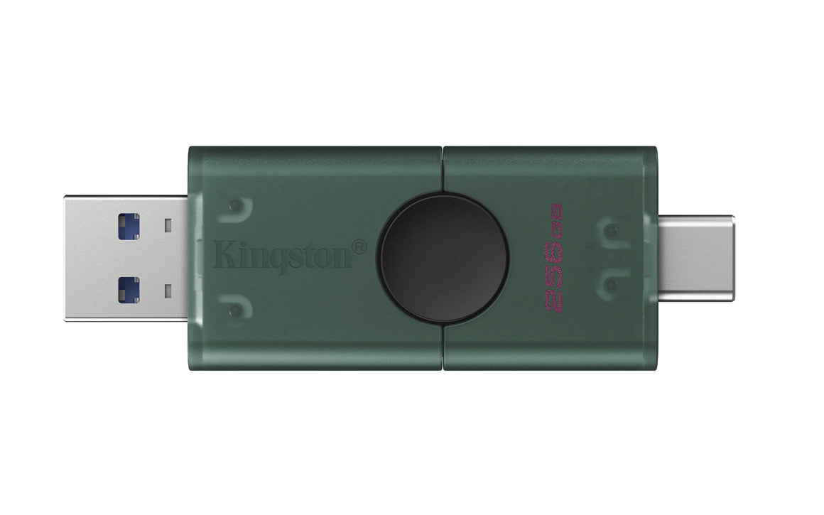Kingston® DataTraveler® Duo features dual USB connectors that work with both USB Type-A and USB Type-C®* ports for maximum compatibility. The innovative dual moving cap design makes the drive stylish and convenient, with no cap to lose. With capacities up to 256GB**, you can easily access and transfer documents, photos, videos, music and more between your USB-A and USB-C devices with the DT Duo. The product is backed by a five-year limited warranty, free technical support and legendary Kingston® reliability.