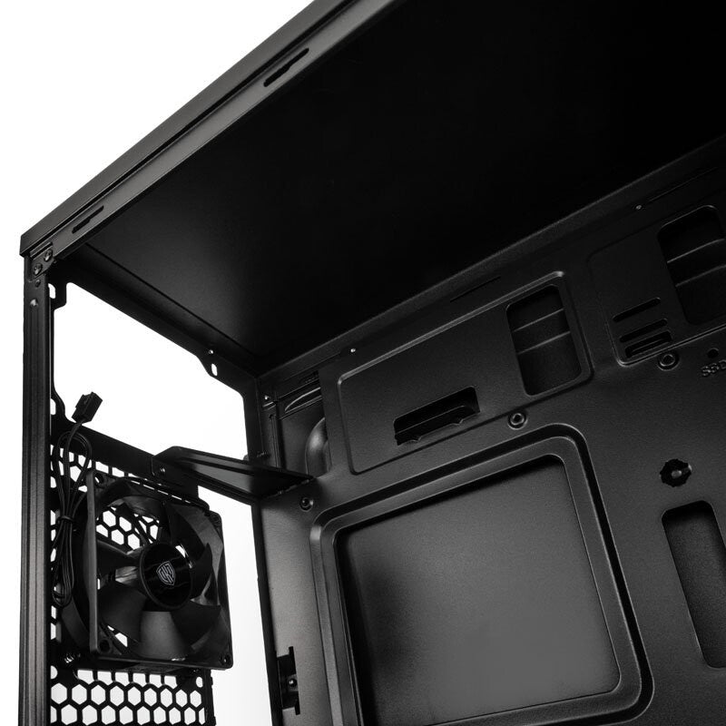 The KLA-003 is a compact midi-tower with dimensions of 365 x 175 x 410mm, yet has all the room you need for a functional system for the home or office. Alongside the pre-installed 80mm fan at the rear, the KLA-003 supports up to 2 x 120mm fans at the front and a 120mm fan on the side panel, allowing for ample airflow within the case. The front panel has air inlets on the right hand side to further improve overall airflow.