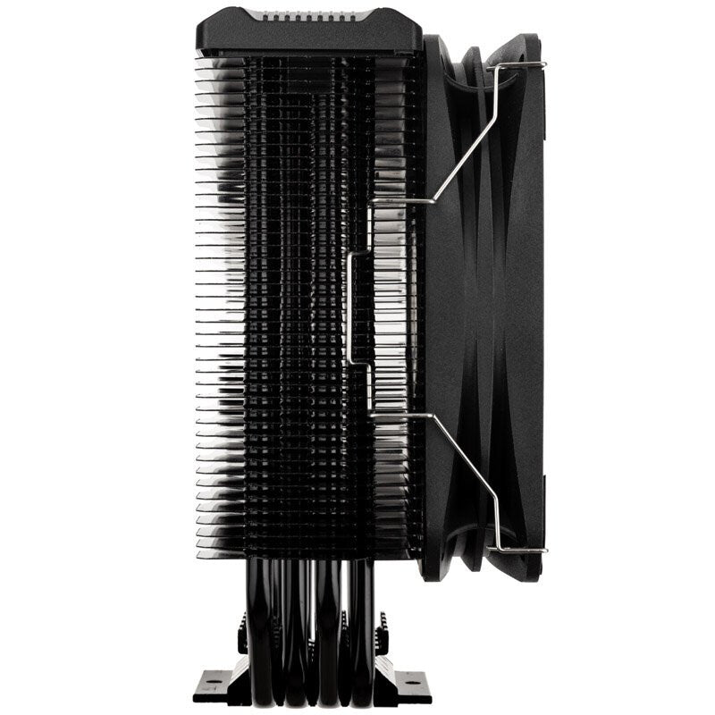 The Kolink Umbra EX180 ARGB is a high-performance single-tower CPU cooler. Equipped with four 6mm heatpipes and a powerful 120mm fan, it is up to the task to deal with CPUs with up to 180W TDP. The highlight of the matte all-black design is the ARGB PWM fan, with its digitally addressable RGB lighting. The mounting system and the slim design with high RAM compatibility allow for an easy installation.