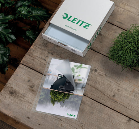 Eye-catching, premium quality A4 Document Pocket for protecting documents on the go and organising papers at work and at home. The multi-punched strip allows convenient storage of documents in lever arch files and binders. Made from 90% (pre-consumer) recycled plastic, externally audited and certified by UL and 100% recyclable. This strong and practical clear plastic pocket perfectly complements other products from the Leitz Recycle range and is made to last. Modern and contemporary green stationery that will look great at home and in the office. With the eco friendly Recycle range from Leitz you can both improve your office environment – and the environment of our planet.