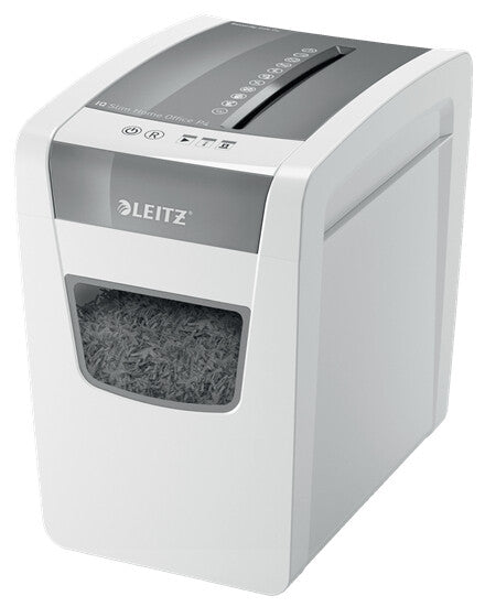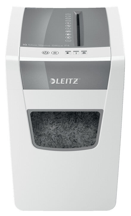 Offering a stylish slim design this shredder from Leitz is ideal for all your home office shredder needs. Compact slim size for easy positioning, ideal for the home office user. Bring some style to your home office with this anti jam, quiet and long running shredder. Shred 10 sheets of A4 into the generous 23L bin with simple operation using touch controls. Increase the security in your document destruction with this Security DIN P4 shredder.