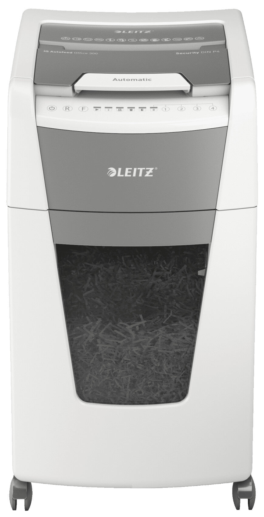 Leitz IQ Autofeed Office 300 Automatic Cross Cut Paper Shredder P4 60L - White