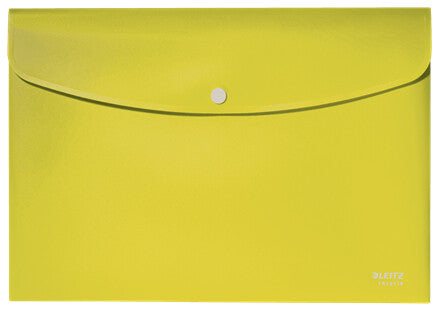 Eye-catching, premium quality PP Document Wallet for every day use in school, office and home with push button closure to prevent documents from sliding out. Made from 80% recycled plastic, 100% recyclable and with Blue Angel environmental certification. This robust and practical document wallet perfectly complements other products from the Leitz Recycle range and is made to last. Modern and contemporary green stationery that will look great at home and in the office. With the eco friendly Recycle range from Leitz you can both improve your office environment – and the environment of our planet.