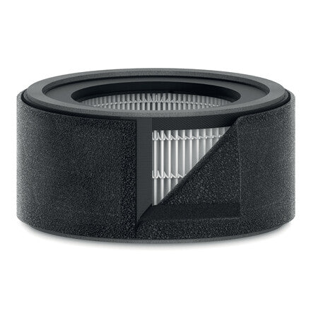 - Carbon prefilter captures odours and certain gases, and offers the first level of defence against larger particles like dust and pet hair