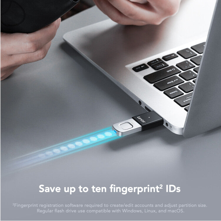 The Lexar JumpDrive Fingerprint F35 Pro USB drive uses your fingerprint to authenticate access to your files. No passwords or codes to remember.