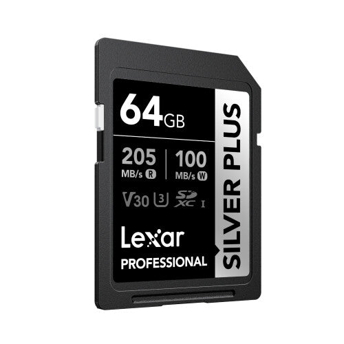 Rated V30, the Lexar® Professional SILVER PLUS SDXC™ UHS-I Card is built to record burst photos without missing a shot and smoothly shoots up to 60 FPS ultra-HD video.
