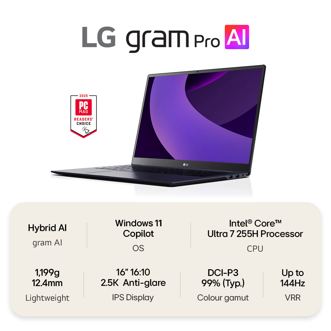 The LG gram Pro evolves with Hybrid AI, yet its slim, lightweight essence stays true. Durability validated by military-grade testing, it offers the joy of lightness and limitless value. With enhanced portability, take your world with you anywhere.