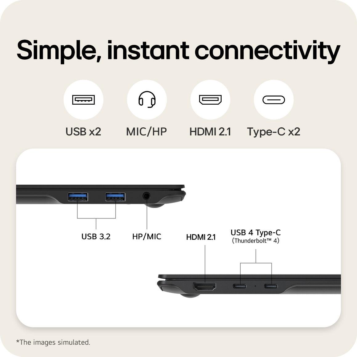 Connect with gram +view, high-speed storage, bigger monitors, or cutting-edge devices. So many ports make a plug-and-play paradise of greater productivity and endless entertainment.