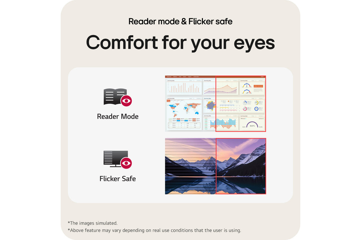 Reader Mode lowers blue light levels, creating a more comfortable viewing experience—great for reading documents, browsing the web, or working for extended periods.