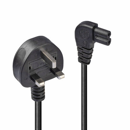 Lindy 0.5m UK 3 Pin Plug to Right Angled IEC C7 mains power Cable, Black