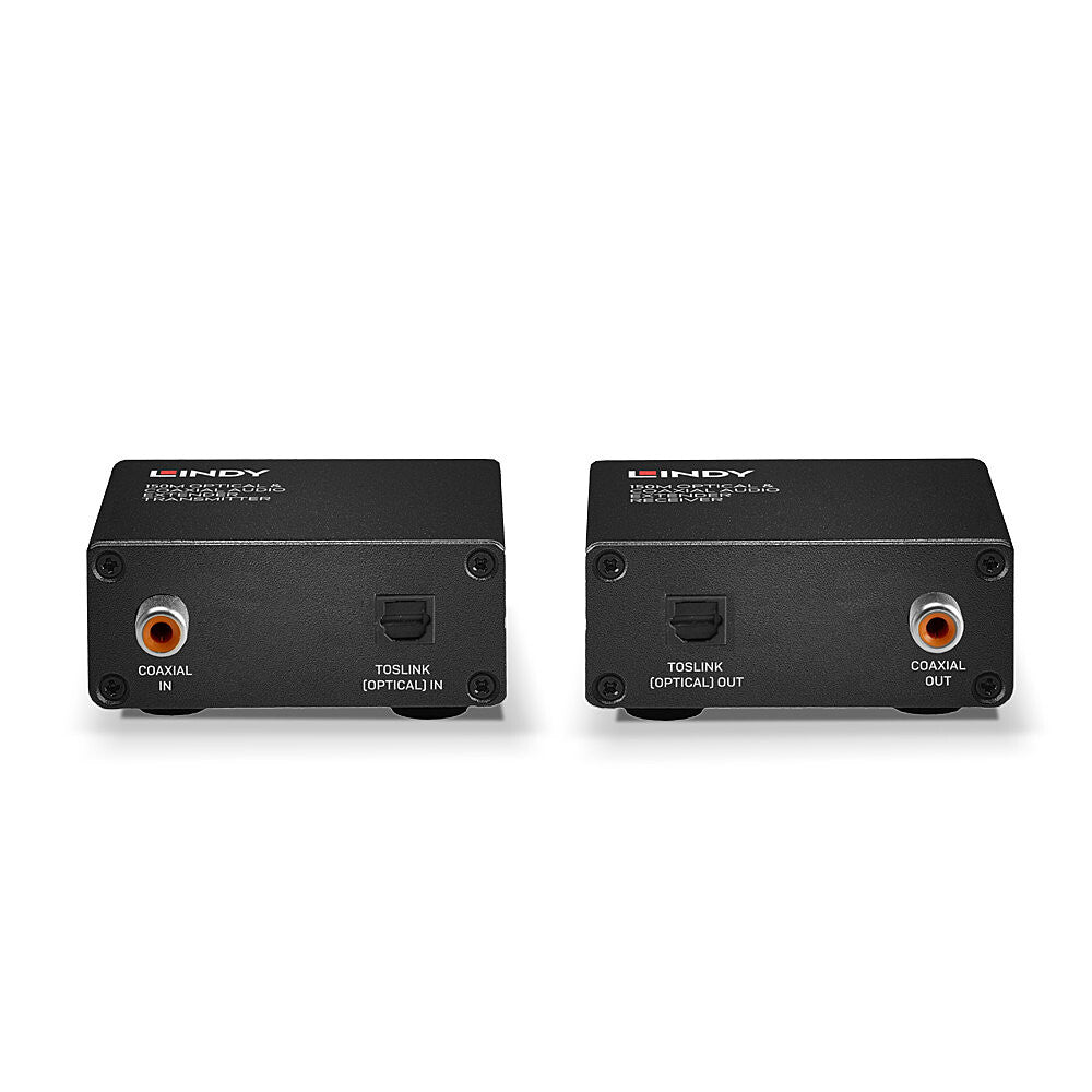 The Lindy 150m Cat.6 TosLink (Optical) and Coaxial Digital Audio Extender is a high-quality solution for extending digital audio signals over long distances, using standard network cable. With TosLink (Optical) and coaxial inputs and outputs, this extender can be easily used with a variety of AV source devices including TVs and amplifiers, with speakers or soundbars located at the receiver side.Connected audio can be output simultaneously to provide splitting functionality from a single input, great for smaller audio broadcasting setups in underground railway stations, bus depots or medical facilities. This also allows simple conversion of TosLink and Coaxial signals into their opposing output.