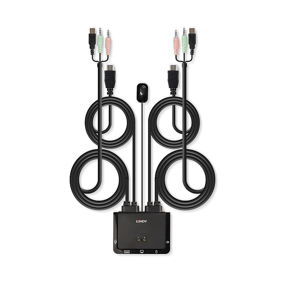 The Lindy 2 Port HDMI 2.0, USB 2.0 and Audio KVM Switch is a compact solution for providing access and control over two HDMI equipped PCs from a single keyboard, mouse and monitor. With integrated cables, this switch can be easily connected directly to the system, with no need for purchasing additional cables and saving time on the installation.