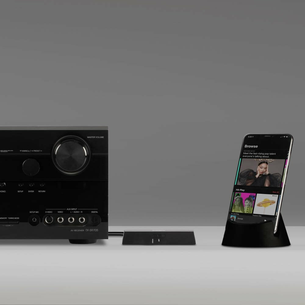 The devices transceiver functionality also allows for this unit to act as a wireless audio receiver with a simple push of the switch. This allows users to connect non-wireless audio output devices such as headphones, older speakers & amplifiers, or car stereo systems to a wireless audio source device including smartphones and tablets.