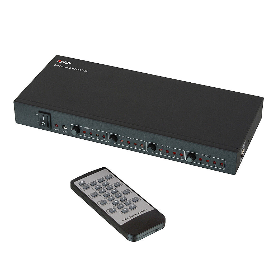 The Lindy 4x4 HDMI 4K 60 Matrix is an effective solution for distributing 4K content from up to 4 HDMI source devices, including PCs and media players, to 4 displays.