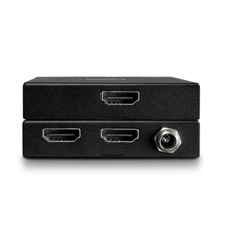 The extender features an HDMI loop-through output on the transmitter which allows for simultaneous viewing using local and remote displays. This versatility provides a suitable solution for use in various scenarios such as educational presentation systems, home cinema, entertainment systems, or trade shows. The built in EDID dip switch enables the user to control which EDID is taken from either display, making installation and configuration simple ensuring maximum compatibility with HDMI displays and projectors. PoC allows both power and data signals over a Cat.6 cable in a point to point configuration, adding flexibility as only one power supply is required for both the transmitter and receiver units. Ideal when power outlets are limited.