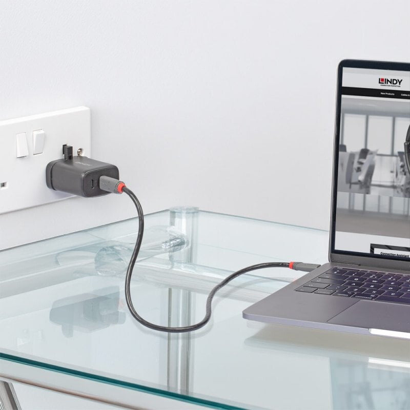 The Lindy 65W 2 x USB Type-C GaN Charger, a powerful and compact charging solution designed to meet the demands of modern devices. Utilizing advanced Gallium Nitride (GaN) technology, this charger delivers efficient, high-speed charging in a much smaller and lighter form factor compared to traditional chargers.