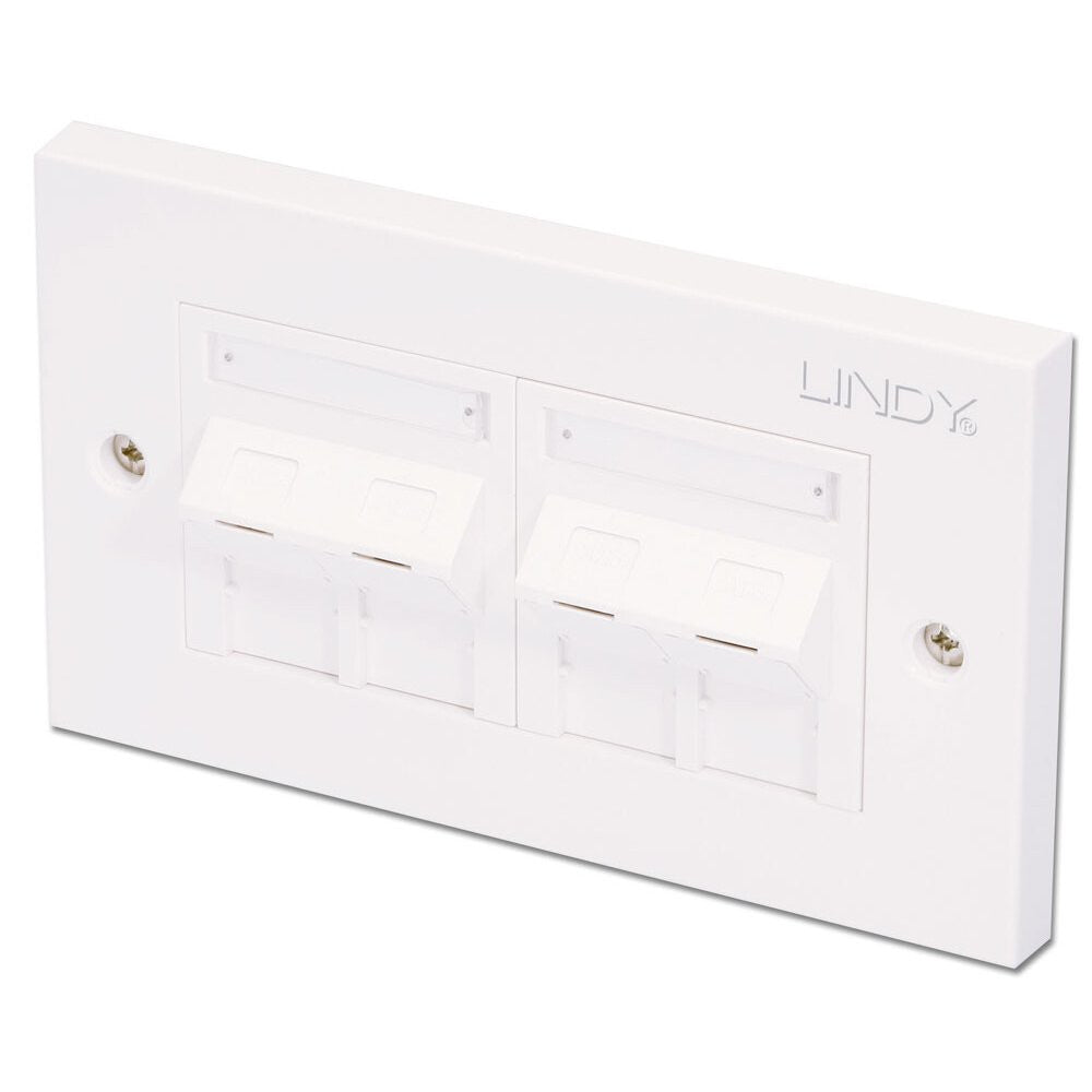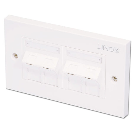 Lindy CAT5e Double Wall Plate with 4 x Angled RJ-45 Shuttered Socket, Unshielded