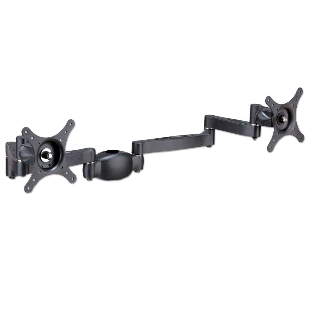 These Dual Adjustable LCD Arms are part of a uniqueBlackModular Desktop Mounting System. With this system you can easily create customized solutions for mounting your laptops and displays in a variety of different configurations.
