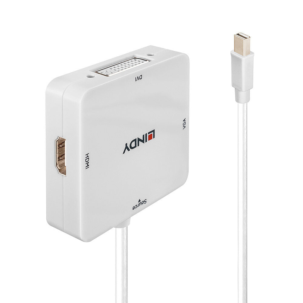 The Lindy Mini DisplayPort to HDMI, DVI and VGA Converter allows users to connect either a HDMI, DVI or VGA screen to a Mini Displayport source.