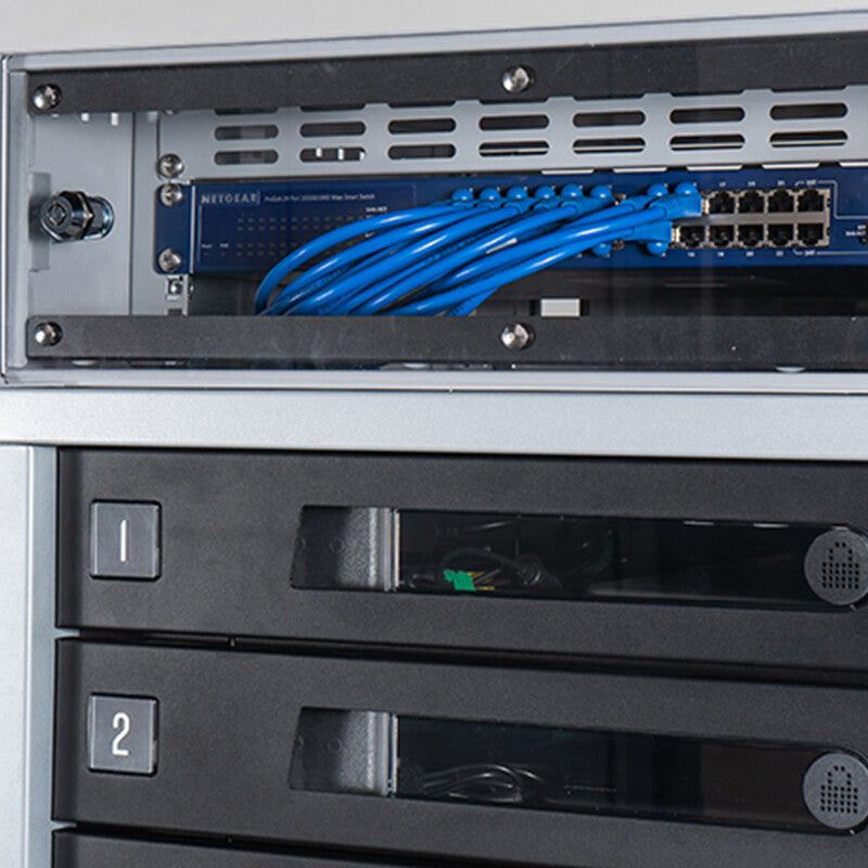An optional Network Kit expands the data transfer capabilities through individual Ethernet connections to each compartment. The Network Kit enables installation of a network switch (not included), making it possible to re-image devices remotely.