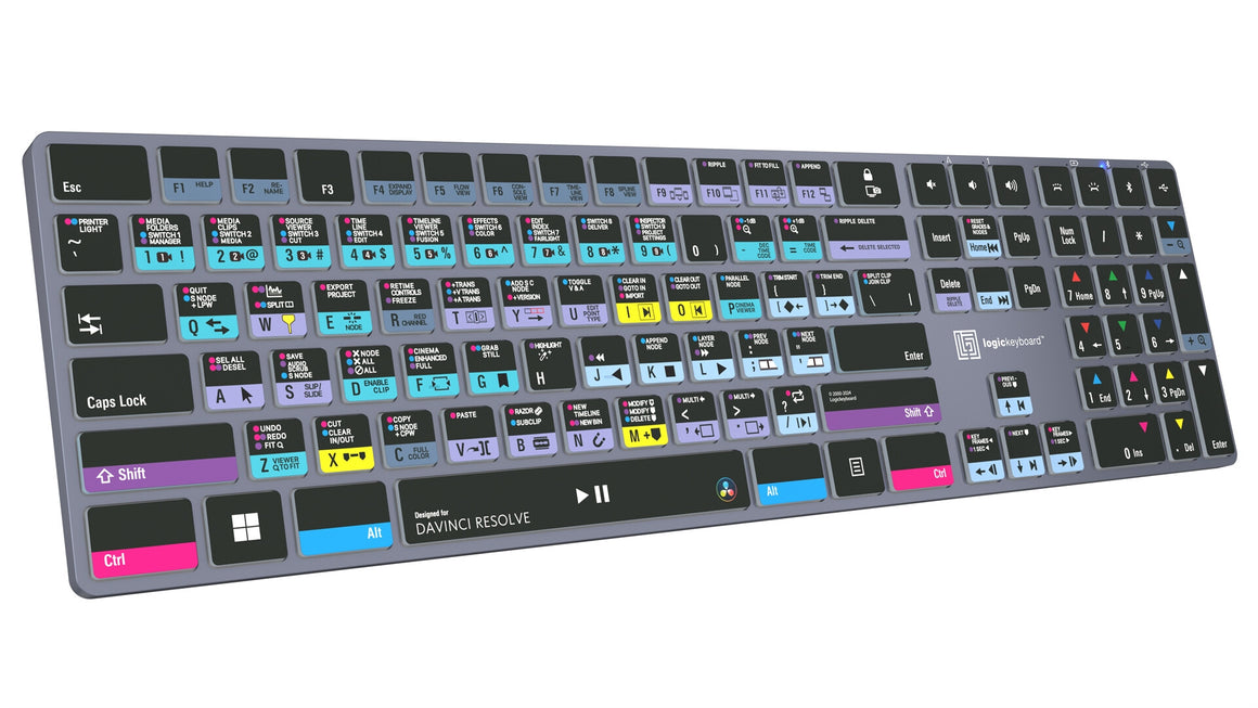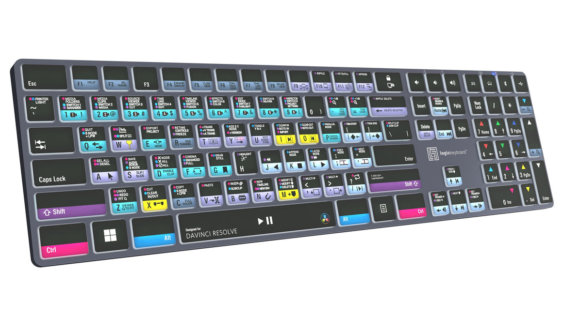 This Logickeyboard is your number one choice when editing in DaVinci Resolve. The shortcut commands labeled on the keys, and their color-coded definitions makes you a Master of controlling DaVinci Resolve in no time. The Logickeyboard is ideal for post-production facilities, professional editing houses, and everyone else working diligently with DaVinci Resolve. The extended Pro layout: Evolving from the classic design with a one-per-key shortcut layout, the extended split-key layout leaps forward with multiple shortcuts per key, jumping from 60+ to an impressive 160+ shortcuts.