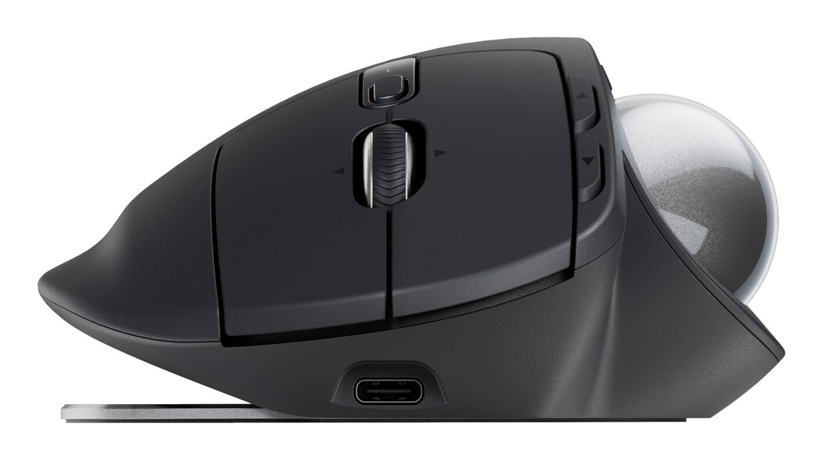 MX Ergo S, Logitech’s most advanced wireless ergonomic trackball yet, with a 20-degree tilt angle and 6 customizable buttons - now with quiet clicks and quick USB-C charging (cable not included).