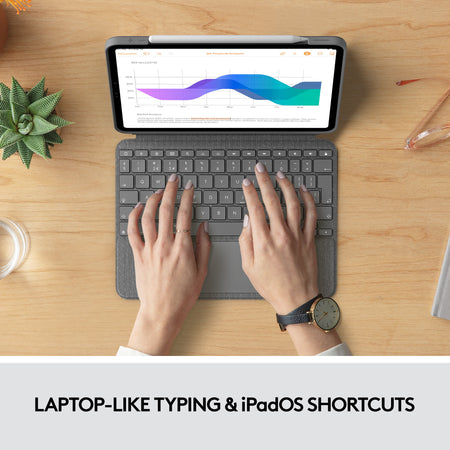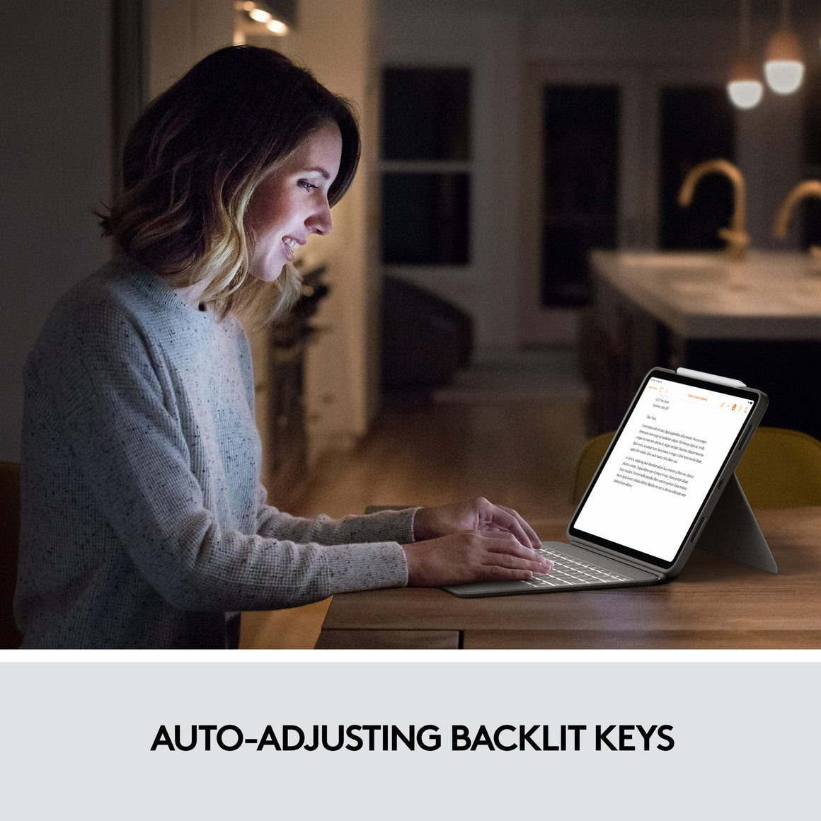 - Backlit, laptop-like keyboard: Backlit keys auto-adjust to your environment with 16 levels of brightness and a full row of iPadOS shortcut keys provide one-tap access to volume controls and more