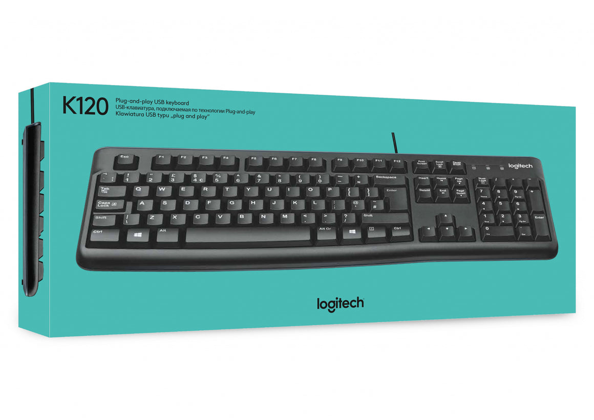 The Keyboard K120 for Business is the budget-friendly keyboard that's built to last. You'll enjoy a comfortable and quiet typing experience thanks to the low-profile keys that barely make a sound and standard layout with full-size F-keys and number pad. With its thin profile, spill-resistant design,* durable keys that can withstand up to 10 million keystrokes** and sturdy, adjustable tilt legs, this sleek keyboard not only looks and feels good-it's built to last. A plug-and-play USB connection means no software installation or IT hassles. Bold, bright white characters make the keys easier to read. And it all comes with the high quality and reliability that's made Logitech the global leader for keyboards and mice.