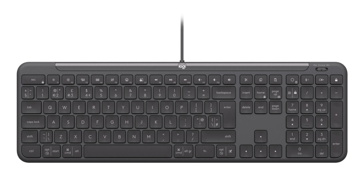 Signature Slim Wired K620 for Business works with Windows, ChromeOS, or macOS with a simple toggle switch that IT can set up at deployment or employees can adjust when they sit at the desk.