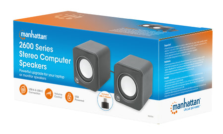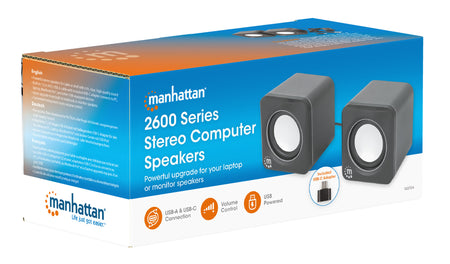 Improve your audio setup with the Manhattan 2600 Series Stereo Computer Speakers, designed to deliver rich, clear, and high-quality sound whether placed on a table or shelf. These powerful stereo speakers are the perfect upgrade from built-in notebook or monitor speakers, offering a superior listening experience for music, gaming, movies, and more.