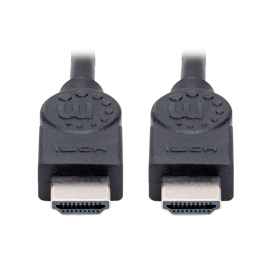 HDMI has become the standard digital connection, delivering the highest-quality audio and video signal over a single cable. The Manhattan High Speed HDMI Cable is designed and carefully constructed to meet the evolving needs of the high-definition marketplace. This shielded cable provides the highest resolution possible at 4K x 2K, an audio return channel and a bandwidth of 10.2 Gigabits per second at 340 MHz. Offering a high-quality connection between HDMI-enabled sources and displays, the Manhattan High Speed HDMI Cable provides ultra-high-definition video and multichannel, digital audio with increased performance characteristics and greater accuracy.