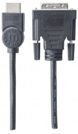 The Manhattan HDMI to DVI Cable is engineered and constructed of quality materials to deliver dependable transmissions in digital video applications. Full foil and braided shielding, molded boots with strain relief and a protective PVC jacket help provide maximum conductivity and clear, crisp signal transmissions without EMI problems.