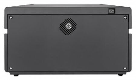 Keep your devices organized in the 20 bays with 264 (D) x 22 (W) x 235 (H) mm / 10.39 x 0.87 x 9.25 in. each. Use the cable management built into the dividers to structure your charging cables (e.g. #356213 or #354868 from Manhattan). As this Desktop Charging Cabinet features USB-C ports instead of AC outlets, you do not need additional wall chargers. The AC input on the back is a C20 connector that lets you replace the included power cable with other cables based on your region.