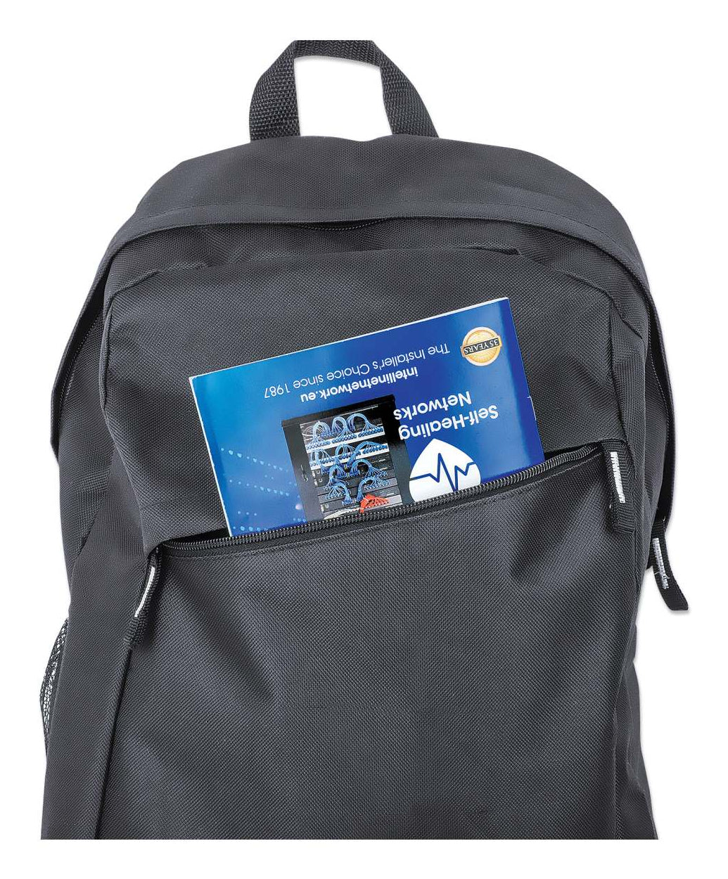 The top-load main compartment features a padded notebook sleeve, fitting most devices up to 14.1", ensuring your laptop stays safe and secure. A large interior pocket provides ample space for files, magazines, headphones, and more, keeping your belongings neatly organized. The large zippered front pocket offers quick access to pens, business cards, power banks, and other accessories you need on the go.
