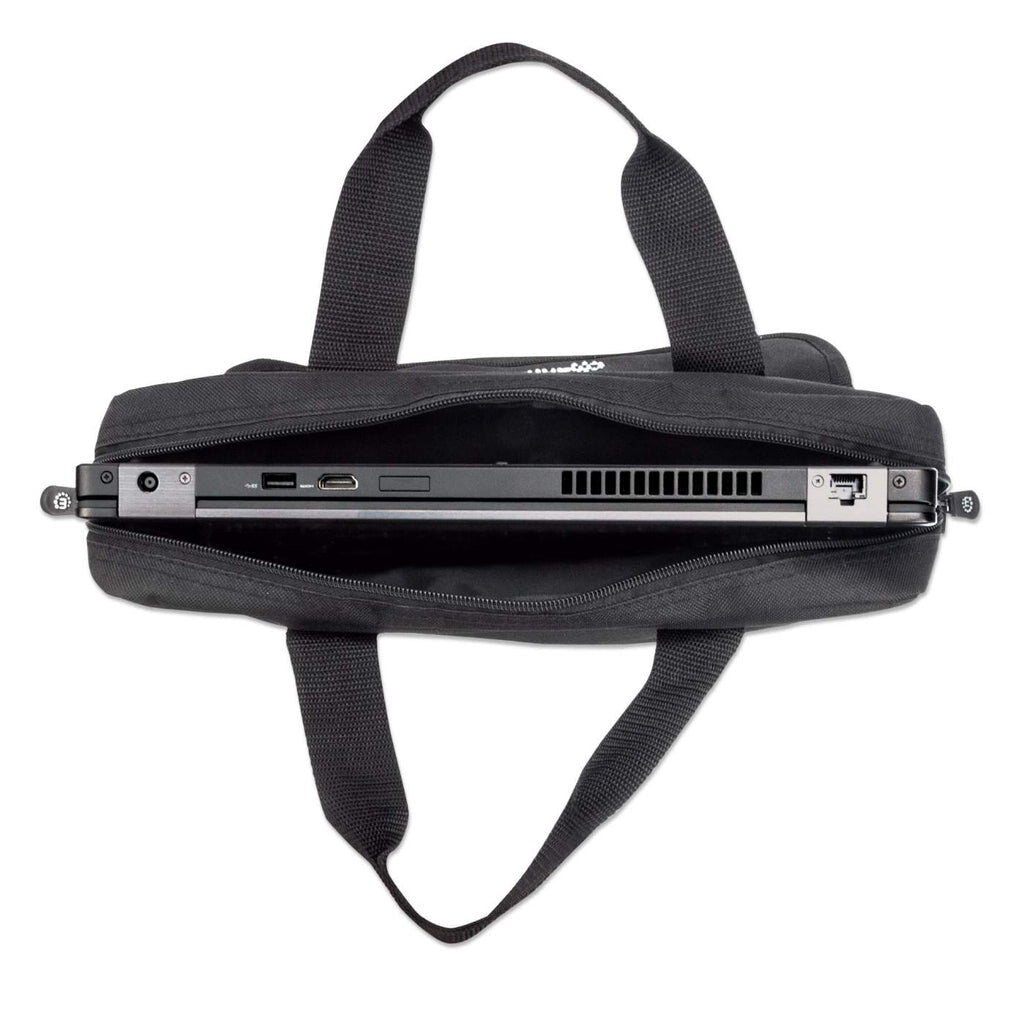 Manhattan London Laptop Bag 12.5", Top Loader, Black, LOW COST, Accessories Pocket, Shoulder Strap (removable), Notebook Case, Three Year Warranty