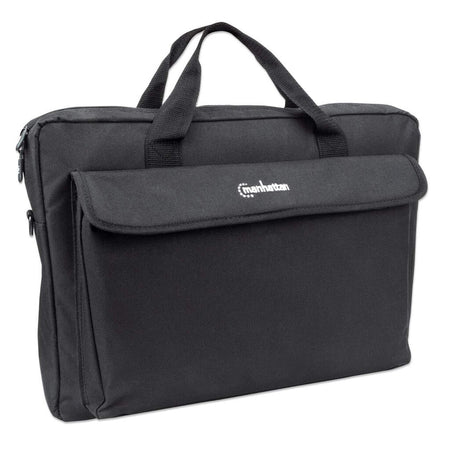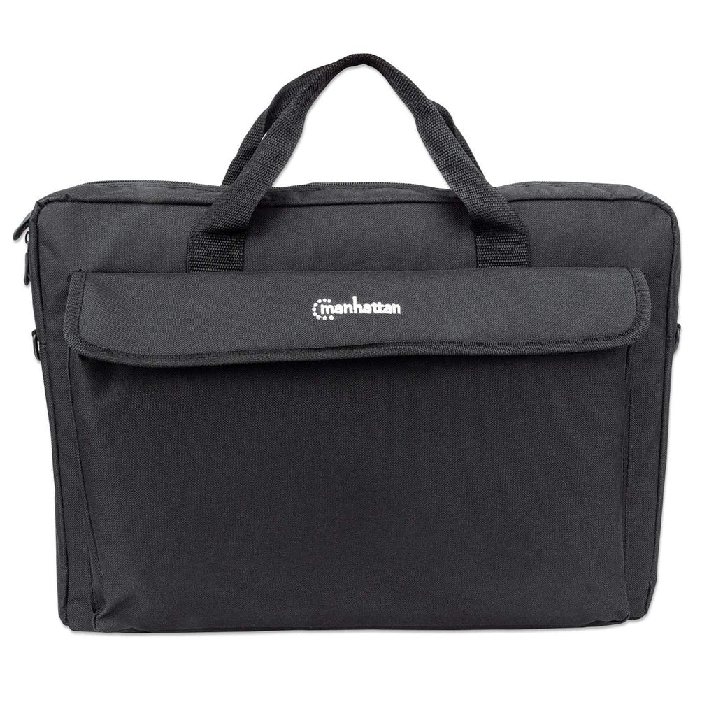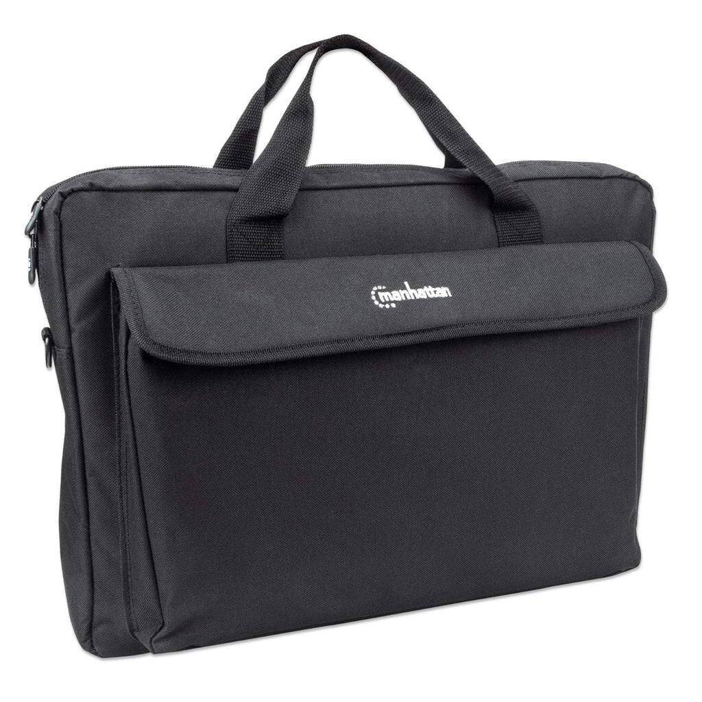 Manhattan London Laptop Bag 17.3", Top Loader, Black, LOW COST, Accessories Pocket, Shoulder Strap (removable), Notebook Case, Three Year Warranty